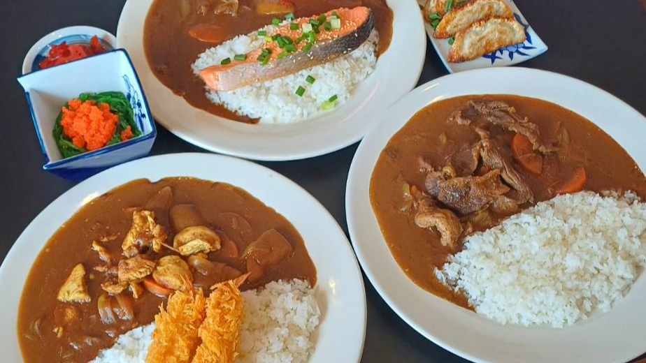 ข้าวแกงกะหรี่เนื้อสันในกับปลาแซลม่อนย่าง