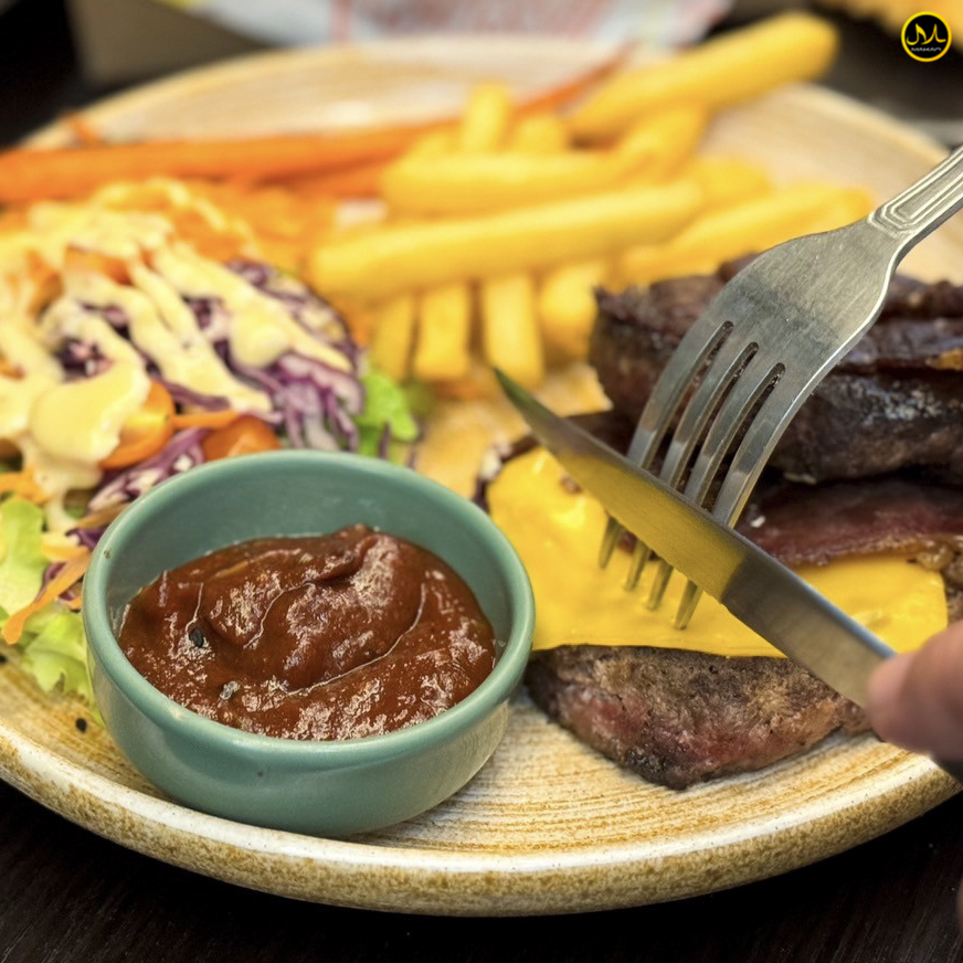 เบอร์เกอร์เนื้อชีส : เบอร์เกอร์เนื้อฉ่ำ ๆ ที่มาพร้อมกับชีสเยิ้ม ๆ อร่อยลงตัว