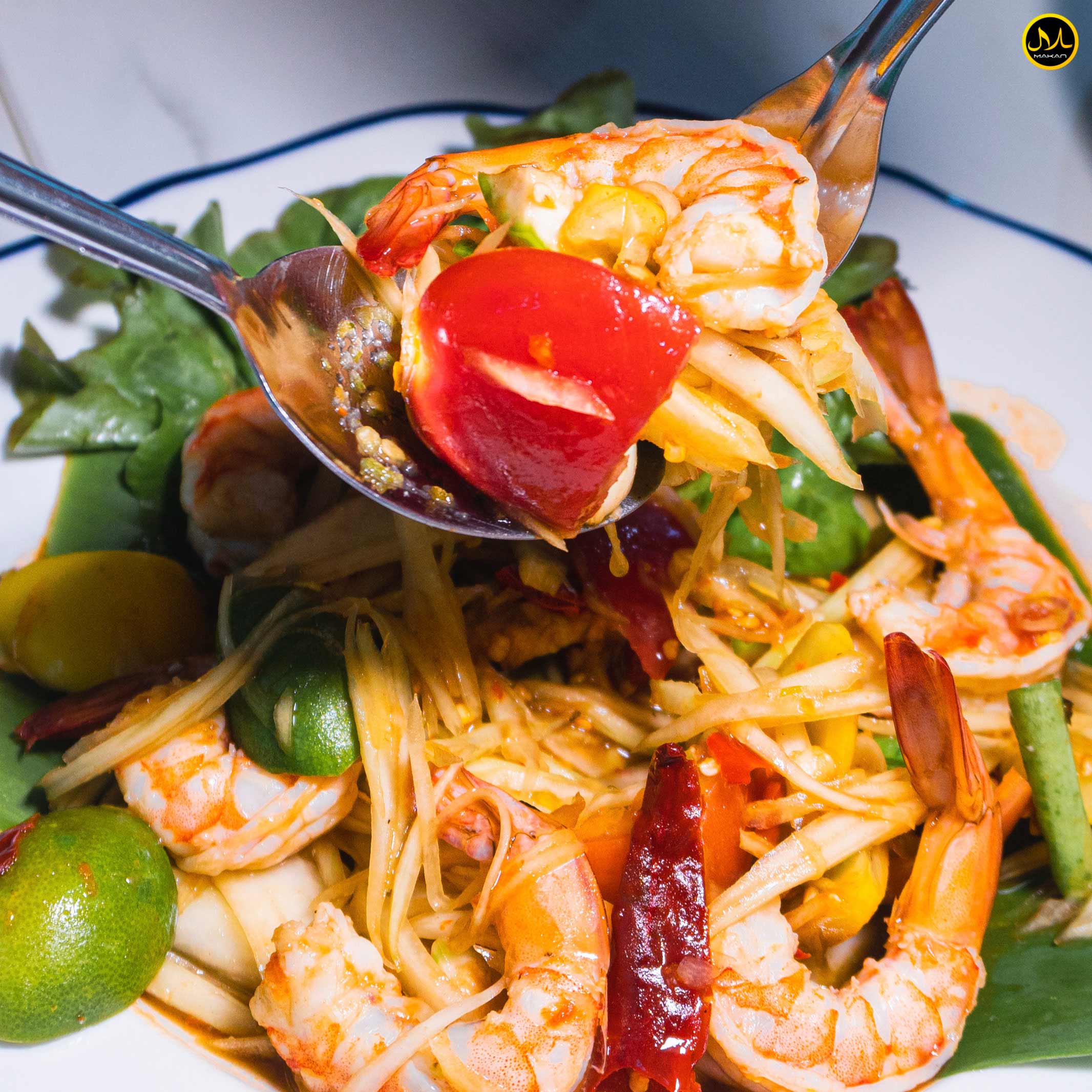 ตำกุ้งลวก: ตำกุ้งลวกที่ไม่ธรรมดา รสชาติจัดจ้าน กุ้งสดๆ เนื้อเด้ง เข้ากันได้ดีกับน้ำตำรสแซ่บ