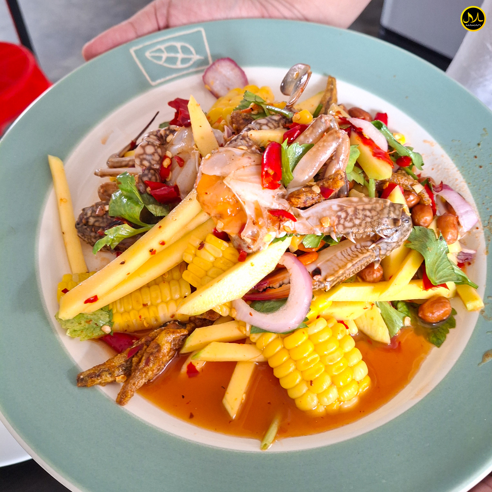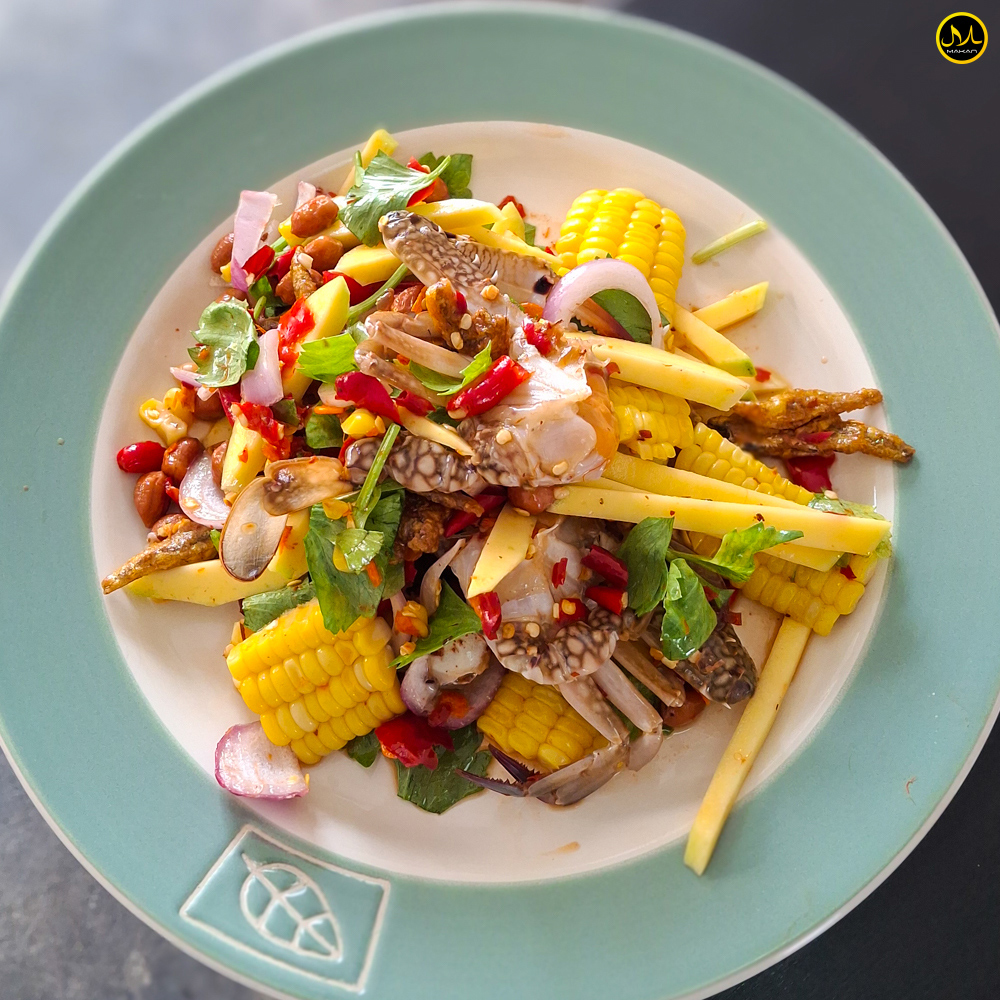 ยำมะม่วงปูม้า: เมนูนี้หากินแบบฮาลาลยากมาก ๆ แต่ร้านนี้มีให้กินครับ น้ำยำแซ่บ ๆ รสชาติจัดจ้านตามใจชอบ ใส่ทั้งมะม่วง ข้าวโพด และปูม้าเนื้อสด ๆ หวาน ๆ เข้ากันสุด ๆ