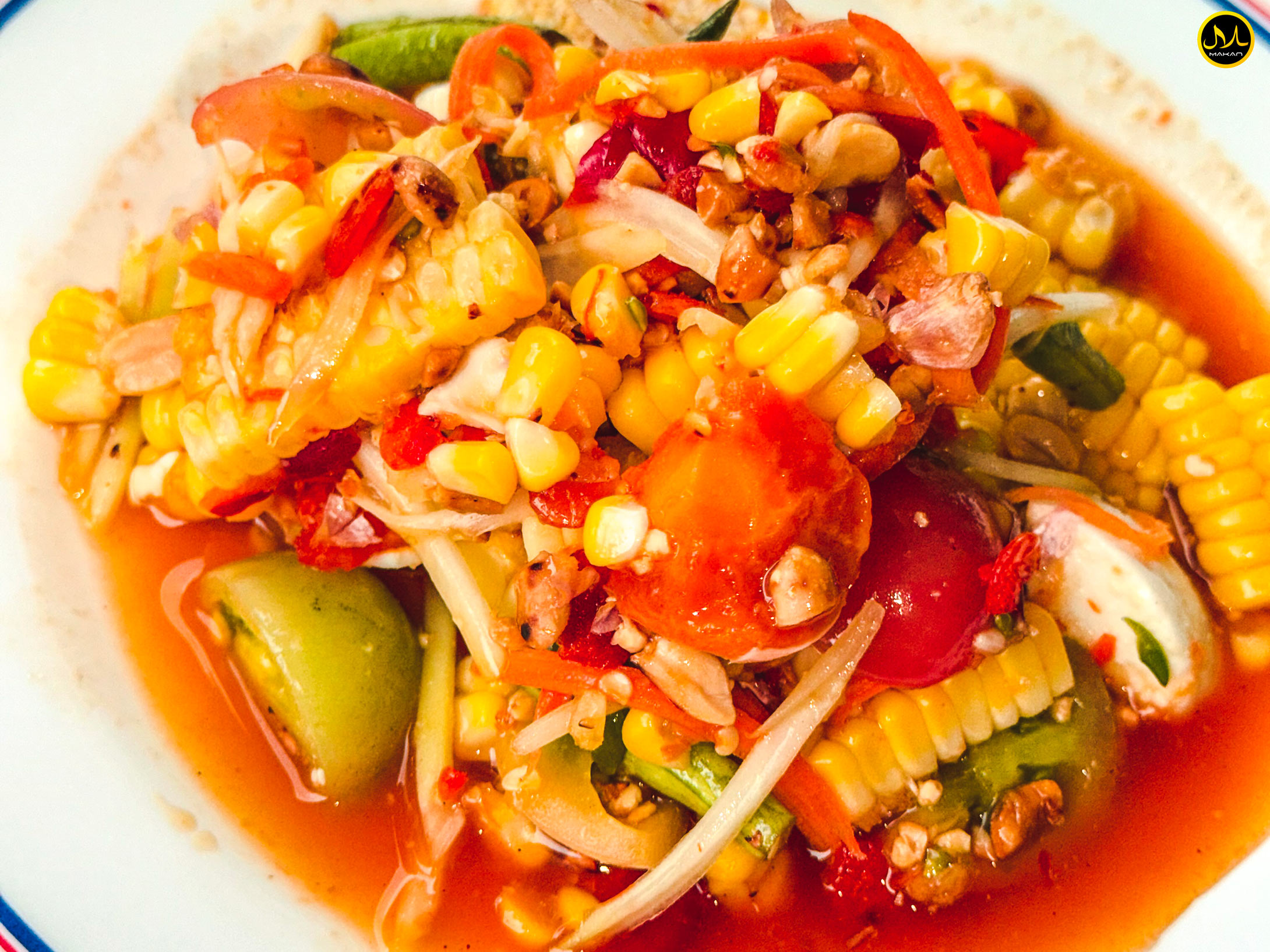 เอาใจคนไม่ทานปลาร้ากันบ้างค่ะ ตำข้าวโพดไข่เค็มของที่นี่รสชาติหวาน สดชื่น เข้ากันได้ดีกับความมันๆ ของไข่เค็ม กินแล้วชื่นใจคลายร้อนได้ดีเลยค่ะ