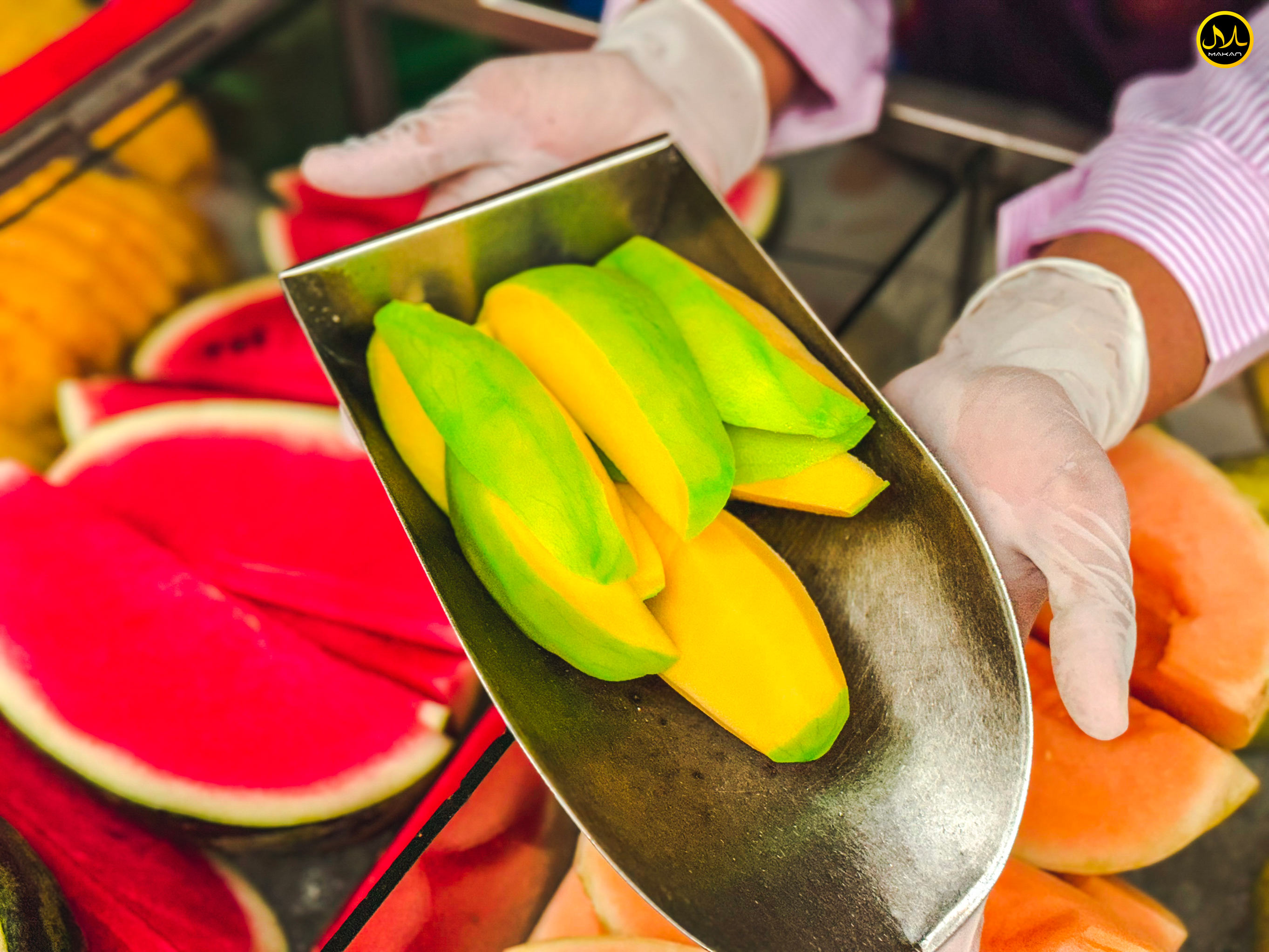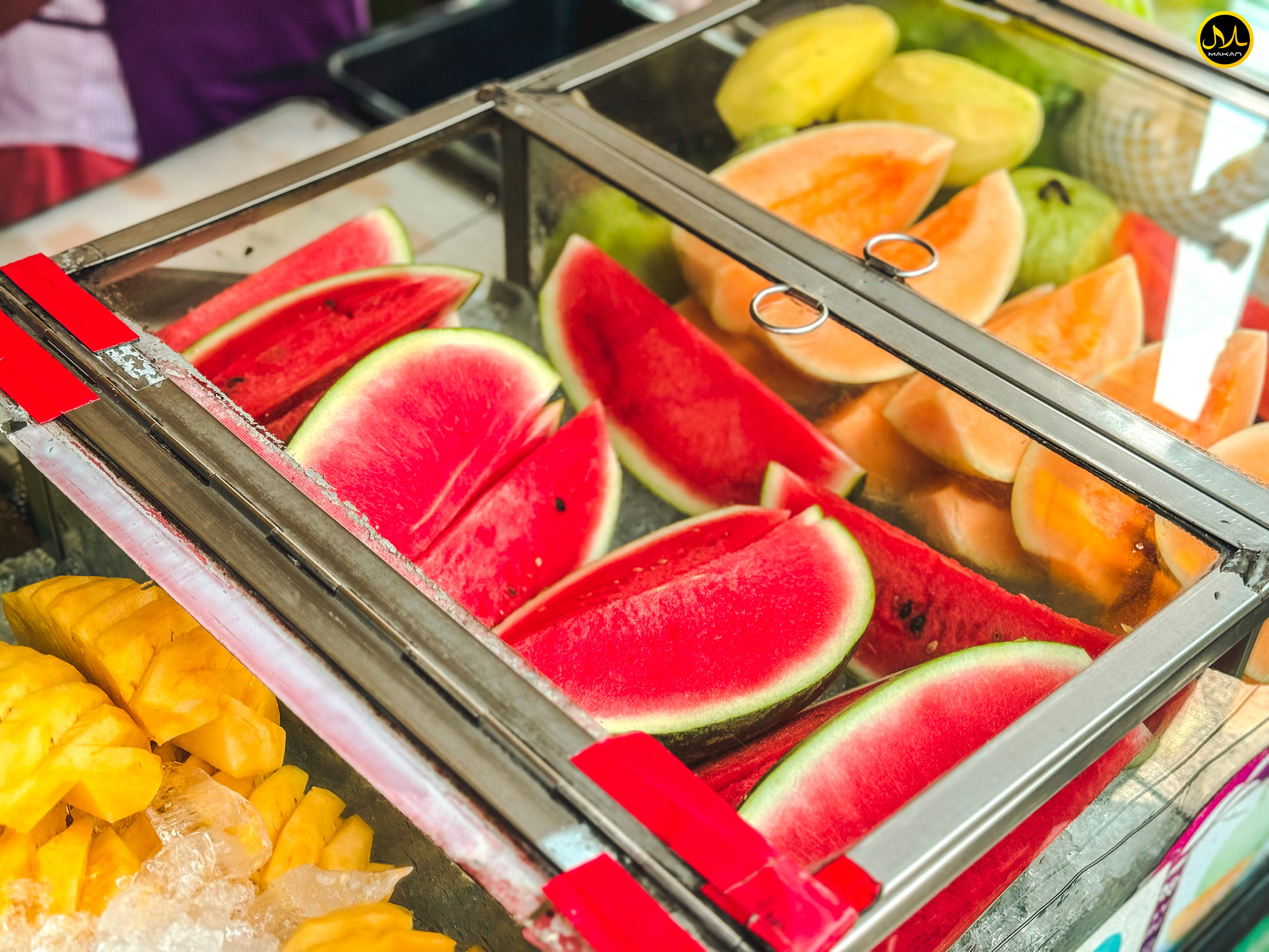 แตงโมหวานฉ่ำ, มะม่วงแช่อิ่มรสกลมกล่อม, สับปะรดเปรี้ยวหวานลงตัว, ฝรั่งกรอบอร่อย, มะละกอสุกกำลังดี, มะม่วงสามรสจัดจ้าน, แคนตาลูปหอมหวาน และผลไม้อื่นๆ อีกเพียบ!