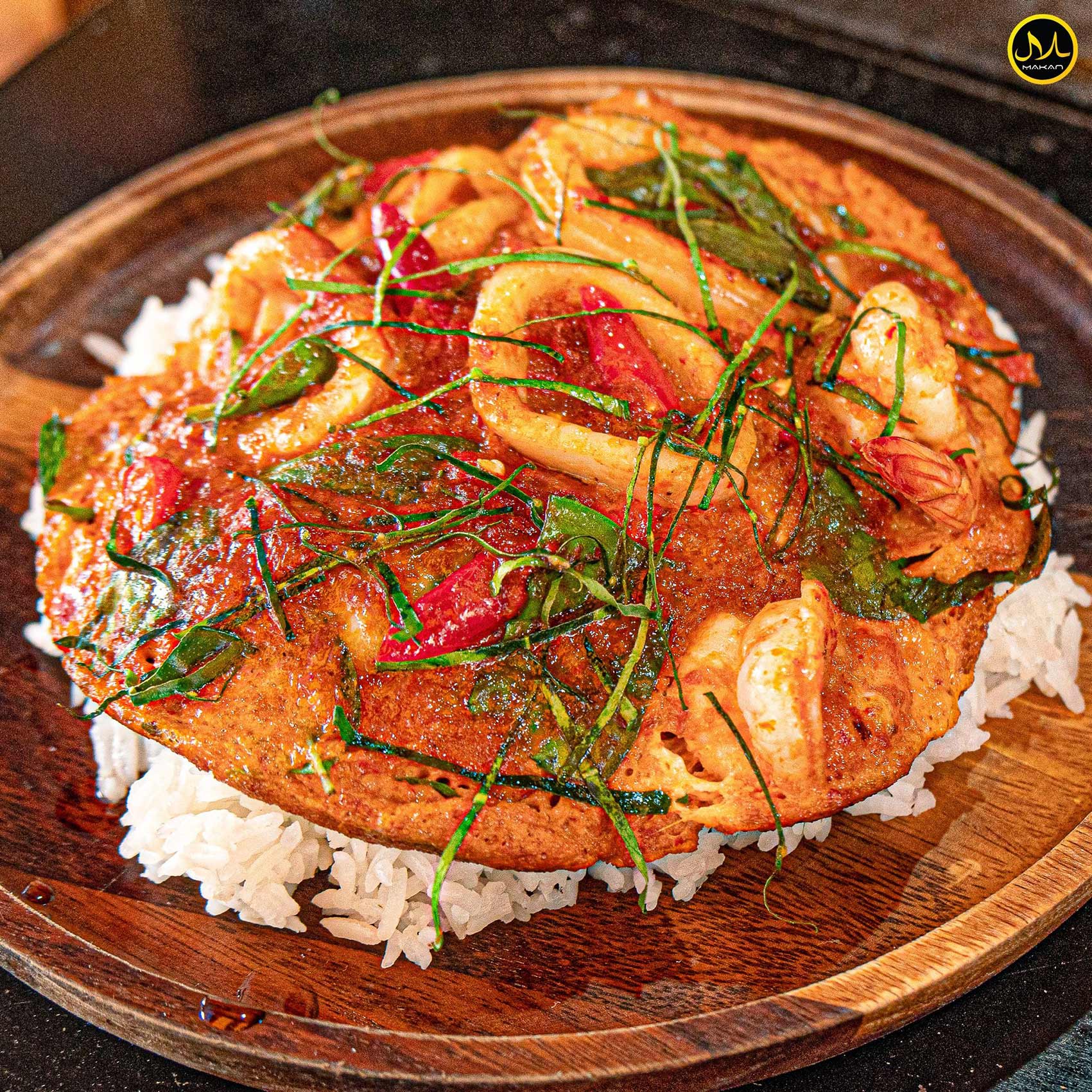 ข้าวไข่ข้นห่อหมกทะเล: จานนี้คือที่สุด! ตัวห่อหมกเข้มข้นถึงรส มีความเผ็ดนิดๆ กำลังดี ที่สำคัญคือเนื้อกุ้งกับปลาหมึกมาเป็นชิ้นใหญ่ๆ เต็มคำ ถ้ามาคนเดียวคือจานนี้จานเดียวเอาอยู่แน่นอน!