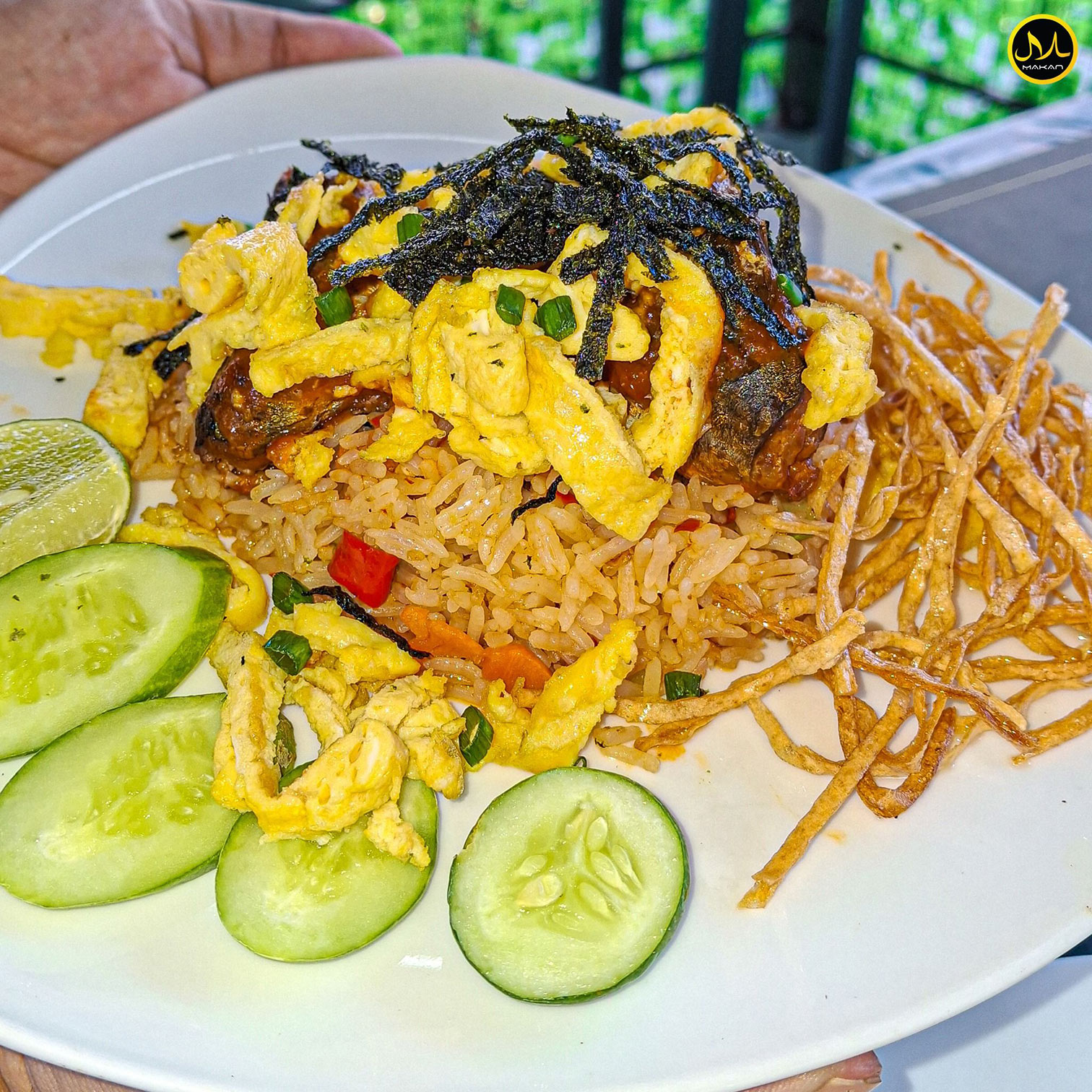 ข้าวผัดปลาแมคเคอเรียล : ข้าวผัดกับซอสเนื้อปลาเเมคเคอเรียล มีไข่นุ่ม และสาหร่ายโรยหน้า หวาน หอม