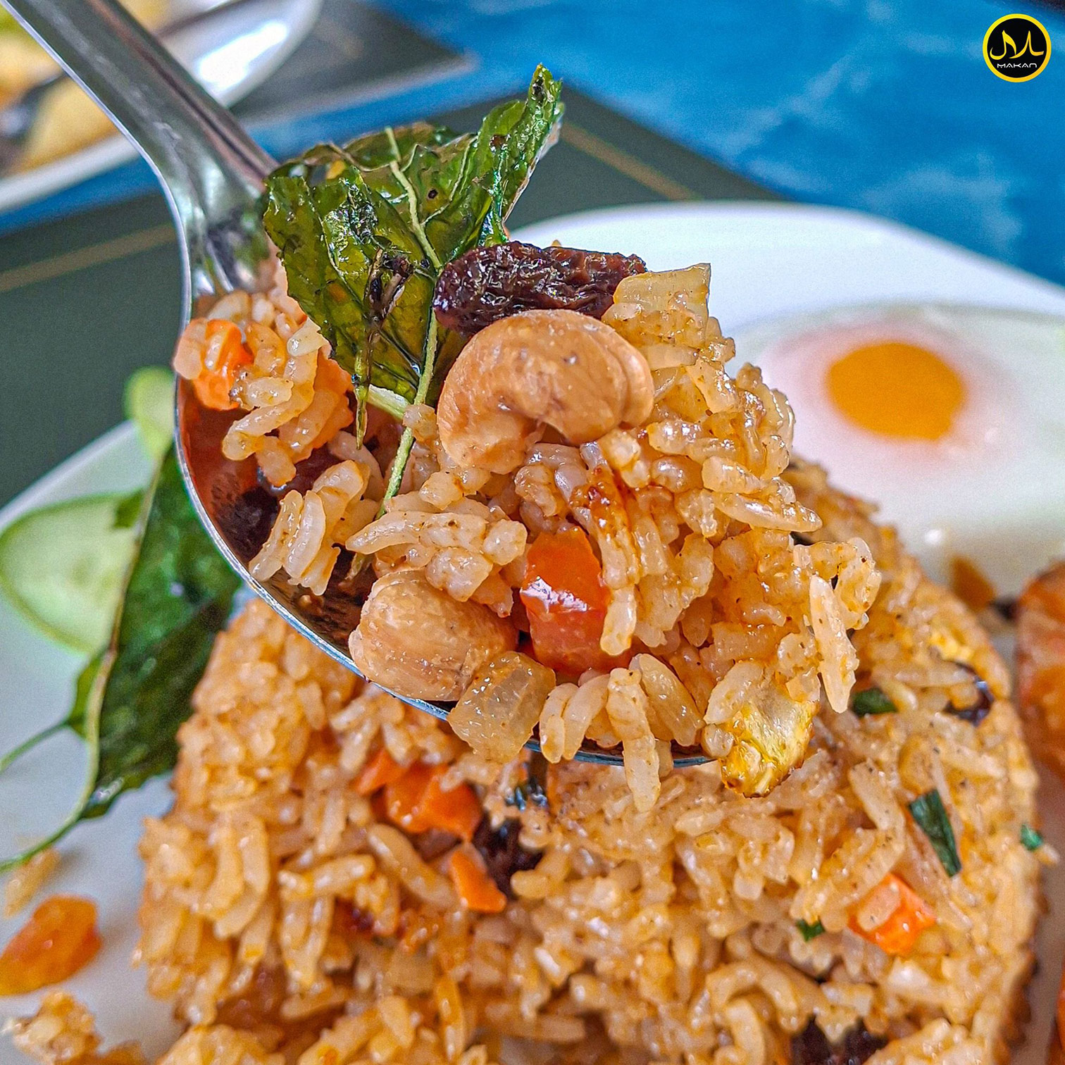 ข้าวผัดซาฟรอง กุ้งชิ้นใหญ่ : ตัวข้าวผัดมาแบบไม่แฉะจนเกินไป กุ้งทอดมากรอบ เพิ่มความมันด้วยเม็ดมะม่วงหินมะพาน แปลกๆ เเต่อร่อยนะแอดชอบมาก!