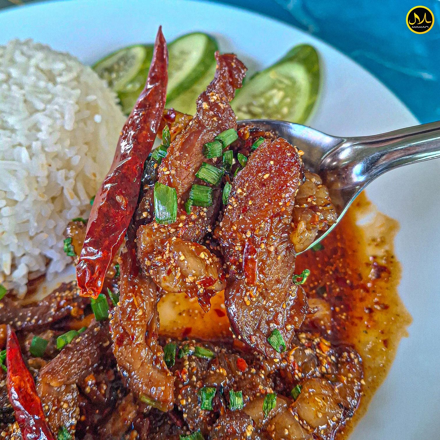 เนื้อย่างผัดน้ำจิ้มแจ่ว : เนื้อหมักชิ้นหนานุ่ม ผัดคู่กับซอสแจ่วเปรี้ยว หวาน เค็ม เผ็ดปลาย มาครบรส อร่อยมาก