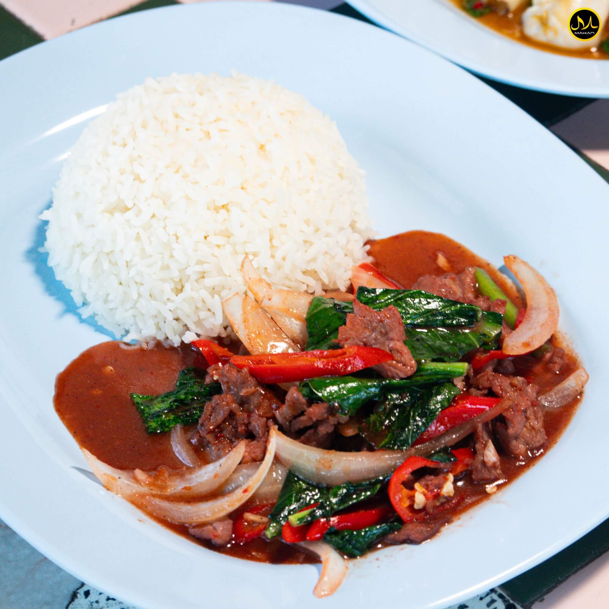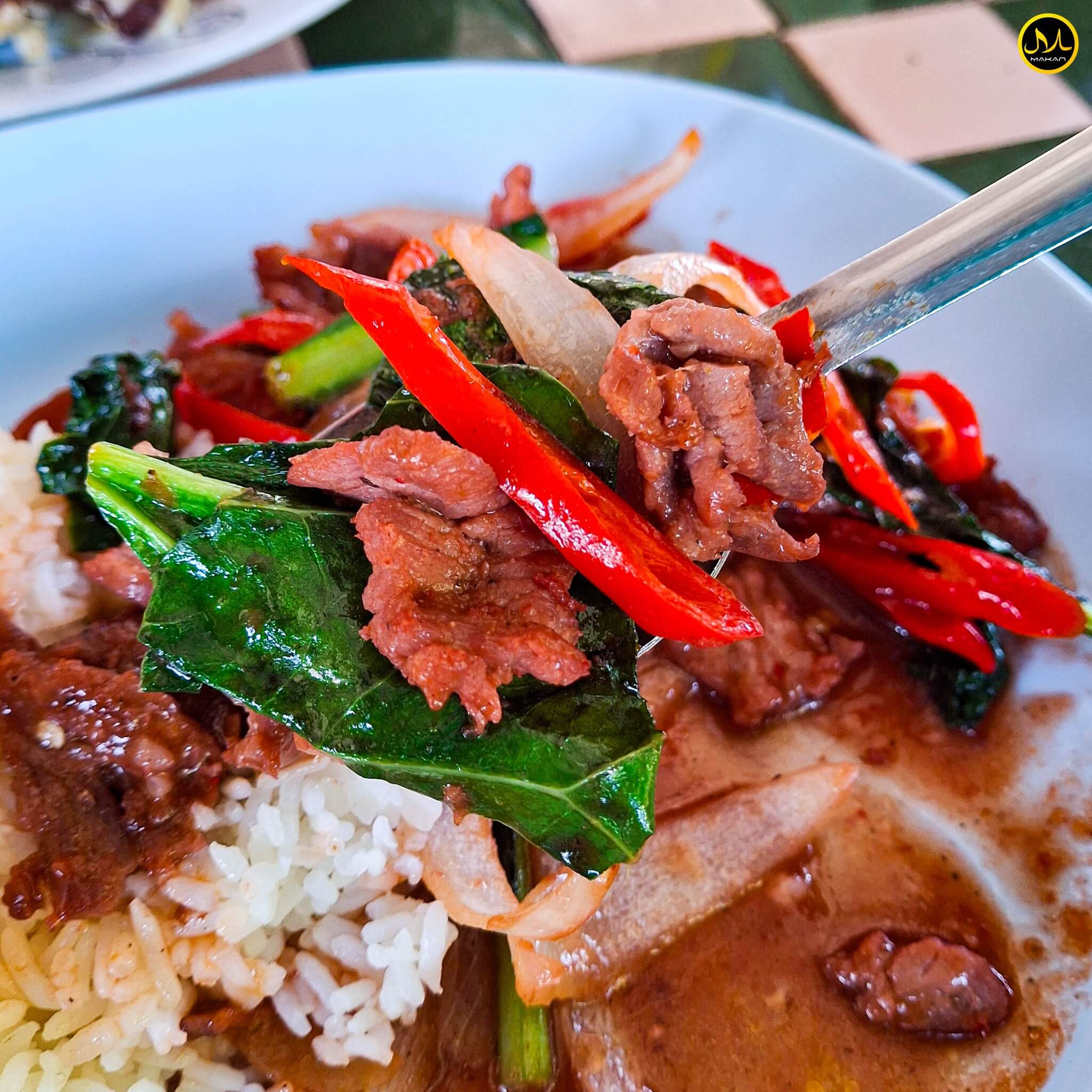 ถ้ามาถึงร้านนี้แล้วไม่สั่งจานนี้ถือว่าพลาดมาก! ขอเสียงคนใต้หน่อยครับ! กับเมนูสุดคลาสสิกที่ยกจากสามจังหวัดชายแดนใต้มาไว้ที่กรุงเทพฯ นั่นก็คือ #เนื้อผัดซอสแดง! โดยทีเด็ดของเมนูเนื้อผัดซอสแดง คือการใช้ซอสหอยนางรม ตราแม่ครัว และซอสปรุงอาหารฉลากเขียว ตราฉลากทอง เพิ่มความอร่อย ทำให้รสชาติเย้ายวน ถูกปากทุกคน