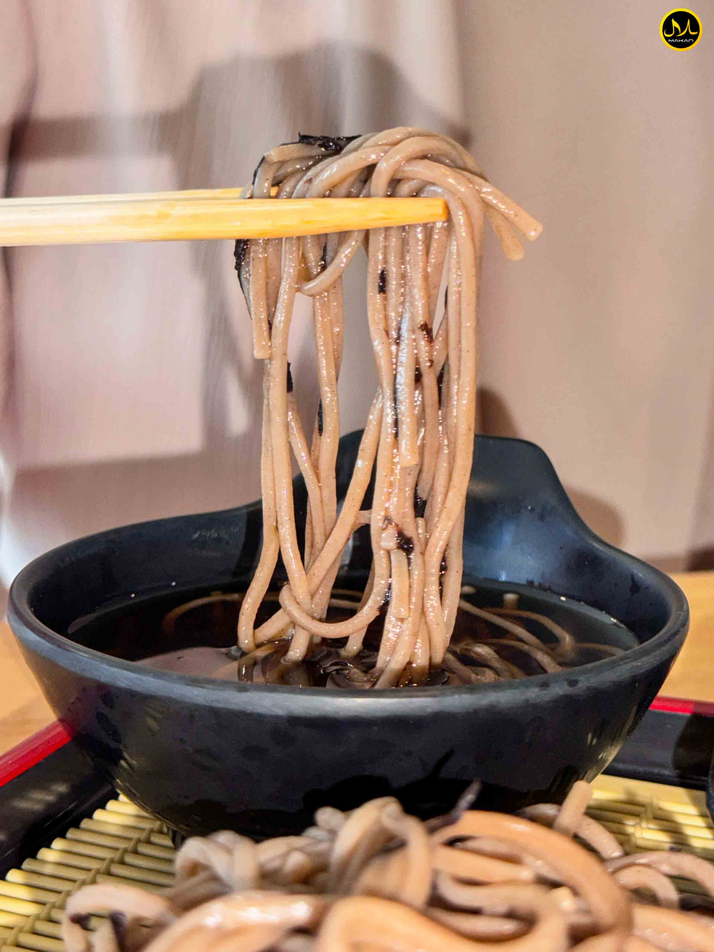 เมนูนี้คือไฮไลท์ที่ "คอเส้น" ห้ามพลาดครับ เส้นโซบะลวกมาได้พอดีมาก เหนียวนุ่มหนึบกำลังดี ทานคู่กับซอสซารุรสชาติกลมกล่อม แต่ที่ทำให้จานนี้ "นัว" ถึงขีดสุดคือ กุ้งเทมปุระทอด ที่เสิร์ฟมาคู่กัน แป้งกรอบฟู เนื้อกุ้งหวานเด้ง เป็นความต่างของอุณหภูมิและความรู้สึกที่ลงตัวสุดๆ ครับ