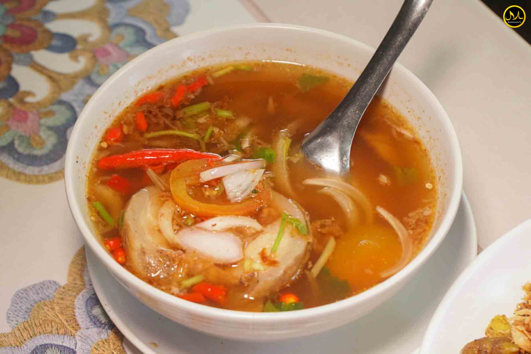 น้ำซุปที่นี่ขึ้นชื่อเรื่องความ "จัดจ้าน" รสชาติเปรี้ยวเค็มเผ็ดตามแบบฉบับซุปมุสลิมขนานแท้ หางวัวถูกต้มจนเอ็นนุ่มเด้งคอลลาเจนละลายในปาก ซดร้อนๆ ตอนเช้าคือการเริ่มต้นวันที่ดีที่สุดครับ