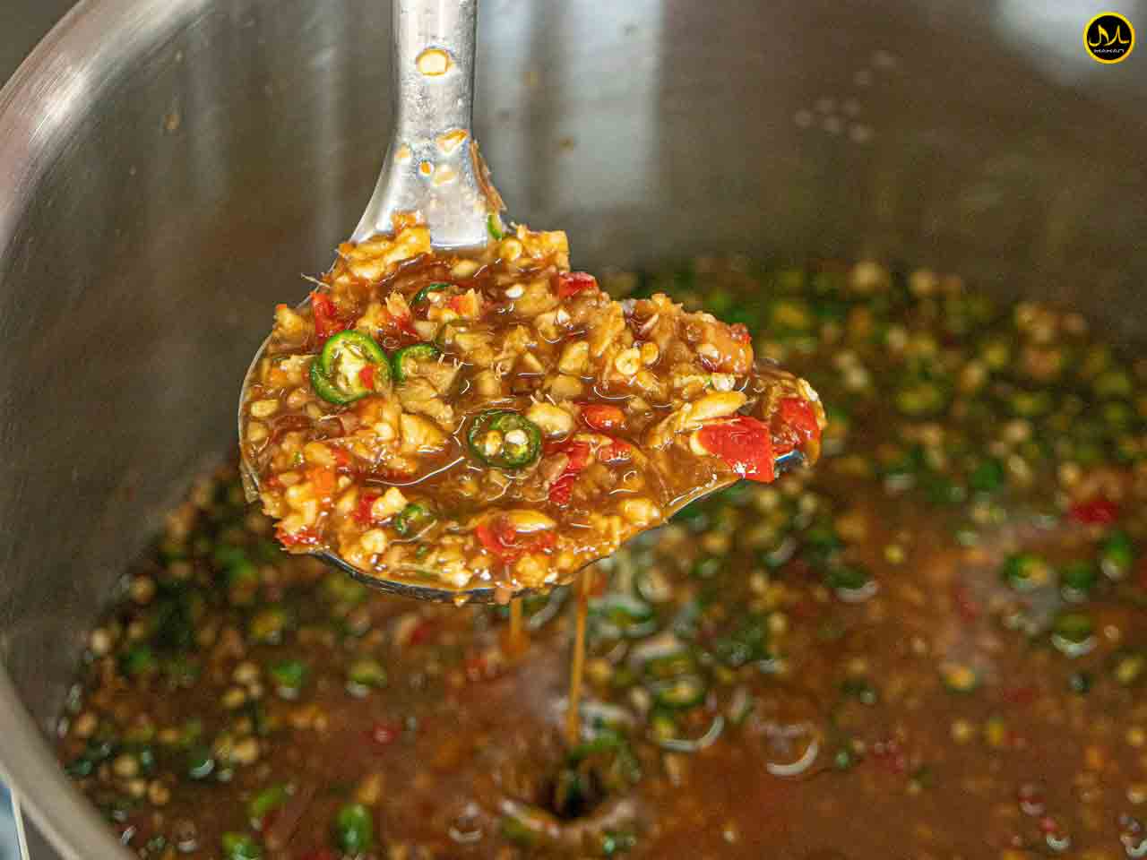 น้ำจิ้มสูตรเด็ด : น้ำจิ้มที่นี่มีความเข้มข้น (Rich) ของเต้าเจี้ยว มีความเผ็ดจากพริกสดและความหอมจากขิงสับที่ใส่มาแบบไม่ยั้ง รสชาติมีความเปรี้ยวเค็มหวานที่สมดุลกันอย่างดีเยี่ยม เมื่อราดลงบนไก่ต้มแล้วทานพร้อมข้าวมัน... โอ้โฮ! พี่น้องเอ๋ย มันคือที่สุด!
